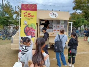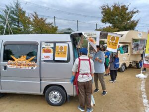 毎年行列ができるキッチンカーコーナー。今年のキッチンカーは昨年より1台増えた5台のラインナップでお送りします。