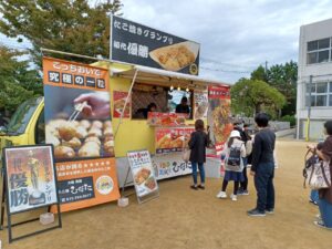 こちらも粟生ぞらまつり皆勤賞のキッチンカーです。たこ焼き(600円~)、焼きそば(700円)、ポテト(400円)などなど…おまつりには欠かせないメニュー展開で皆さんをお待ちしています🍟