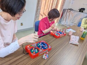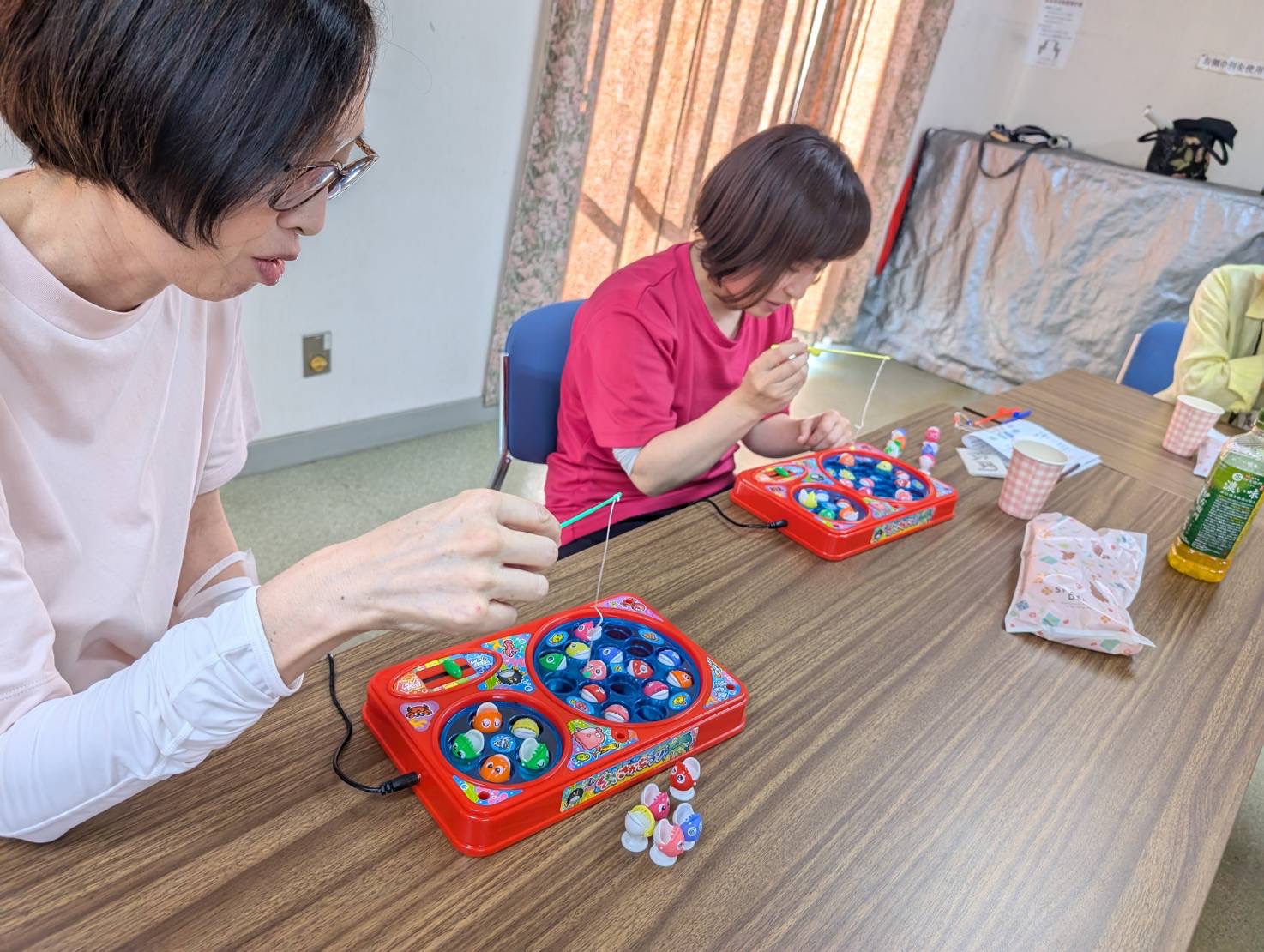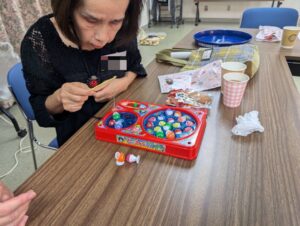 あとの2枚は魚釣りゲームです。電気で動く魚が口を開けた所で釣り糸を入れて釣り上げるのですが、皆さん一生懸命やっていました。面白いですよ。