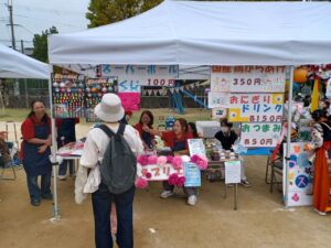 ふれあいルーム1階の「笑みー」を拠点に手芸を楽しんでいるサークルです。今年はジュースやお茶(150円)を販売します。嬉しい「くじ引き」つき。何が当たるのかはお楽しみです。