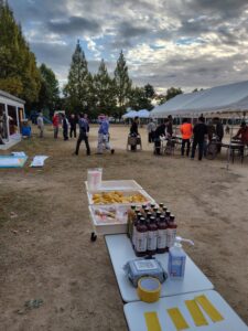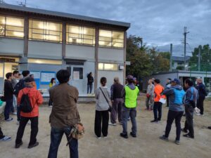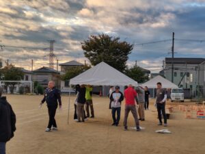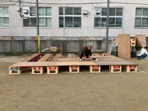 心配された雨は降りだし予想が後ろ倒しになったことから、朝6時に予定通り外での開催を決定。着々と準備を進めました。