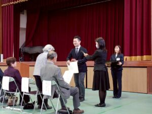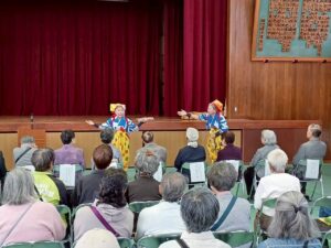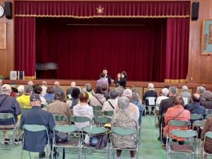 午前10時、一足先に「敬老のつどい」がはじまりました。市長による表彰に続き、懐かしい歌謡をみんなで歌う催しと続きます。