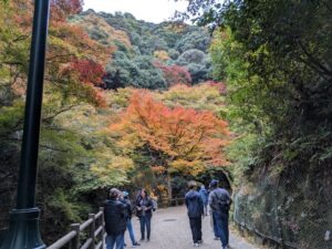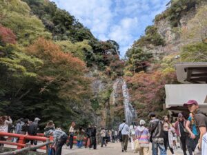 イベントブログ11月16日のYOBは、それぞれの理由でお休みが多く3人だけの参加で、箕面の滝散策でした。滝道はまだまだ紅葉が進んでいませんが、大勢の人が行き交い楽しんでいました。