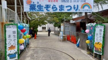 10月25日、東小学校で「2025 粟生ぞらまつり」が開催されました。心配された雨は降りだし予想が後ろ倒しになったことから、朝6時に予定通り外での開催を決定。着々と準備を進めました。午前10時、一足先に「敬老のつどい」がはじまりました。市長...