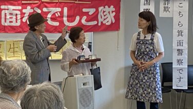 イベントブログ 特殊詐欺NO‼️防犯劇で手口を学ぶ 9月26日に開催しました粟生外院の会のご報告です対象の方14名でした☆防犯なでしこ隊による寸劇☆大阪府警の方による防犯被害情報などのお話☆手遊び,歌,クイズ☆ティータイム皆様,熱心に寸劇をご覧になっていて役に立ったと喜ばれ、楽しかったと帰ら... 2025.09.30 イベントブログ